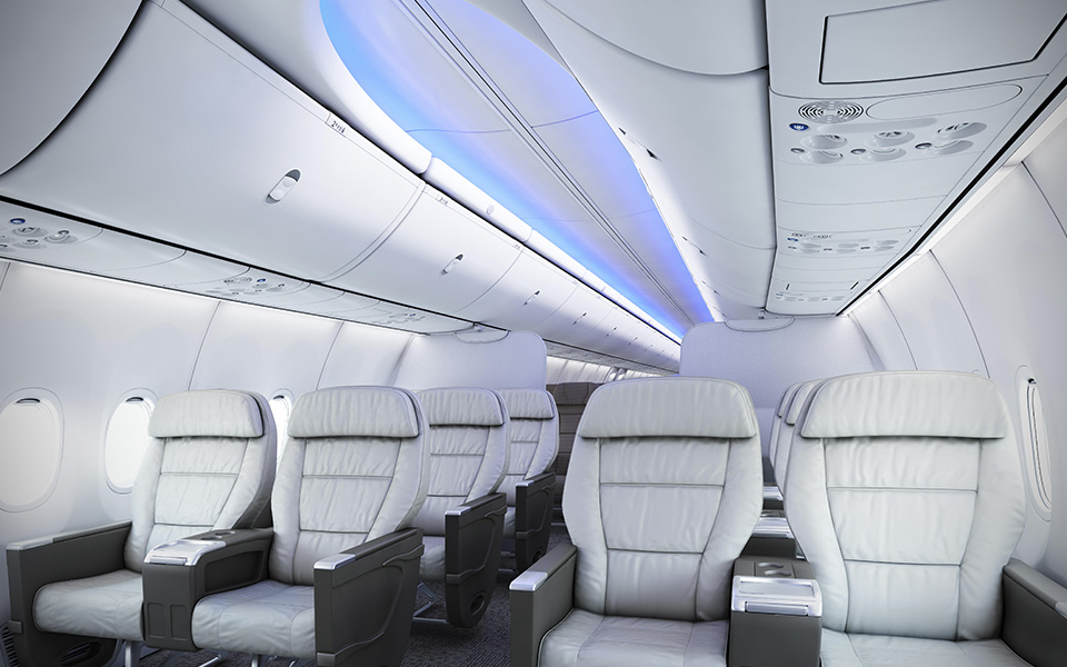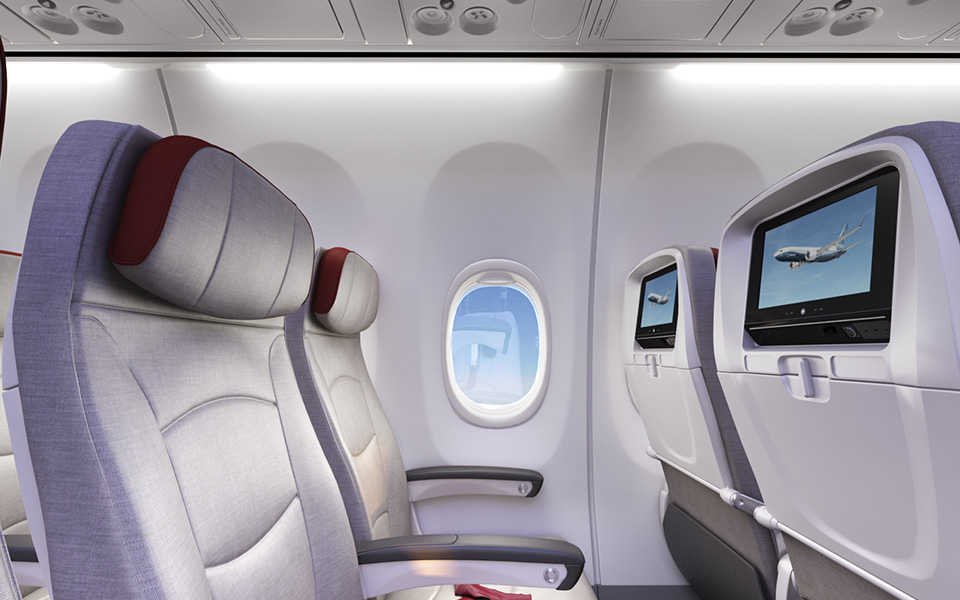 737 MAX 家族的设计将为客户提供单通道飞机市场具有最佳灵活性、可靠性及效率的产品。每架飞机都将配备波音天空内饰。这种新型内饰采用了现代造型的侧壁和舷窗框、可增强开阔感的LED照明设备,以及更大的转轴式头顶行李舱。